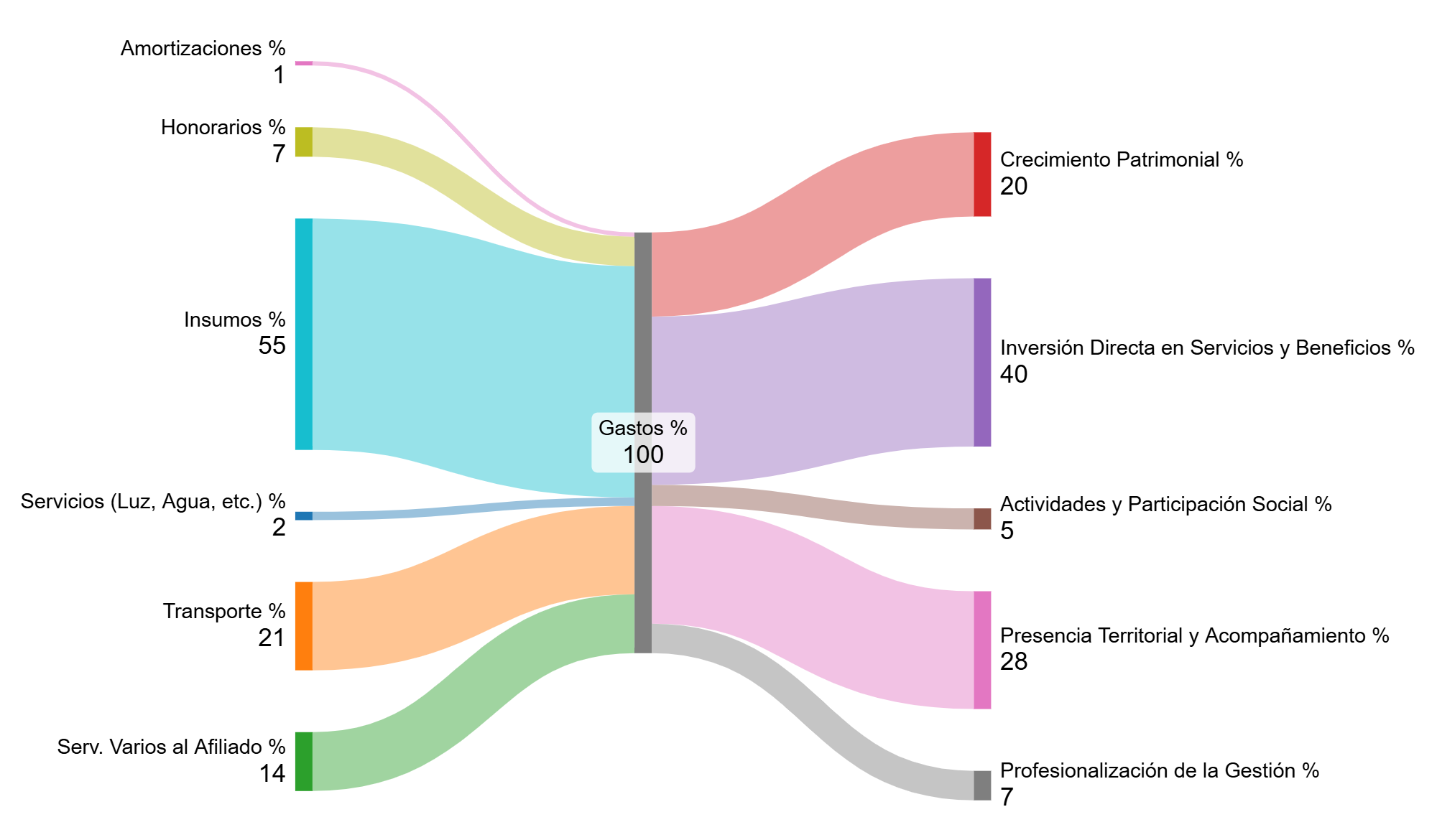 A continuación se presenta una visualización que permite comprender de manera clara cómo los recursos del sindicato se integran y se orientan hacia los distintos ejes de acción institucional.